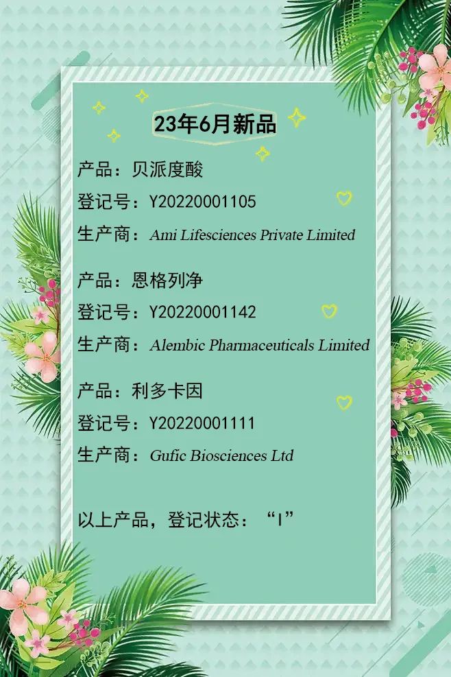 以下为新增 原料药明细: